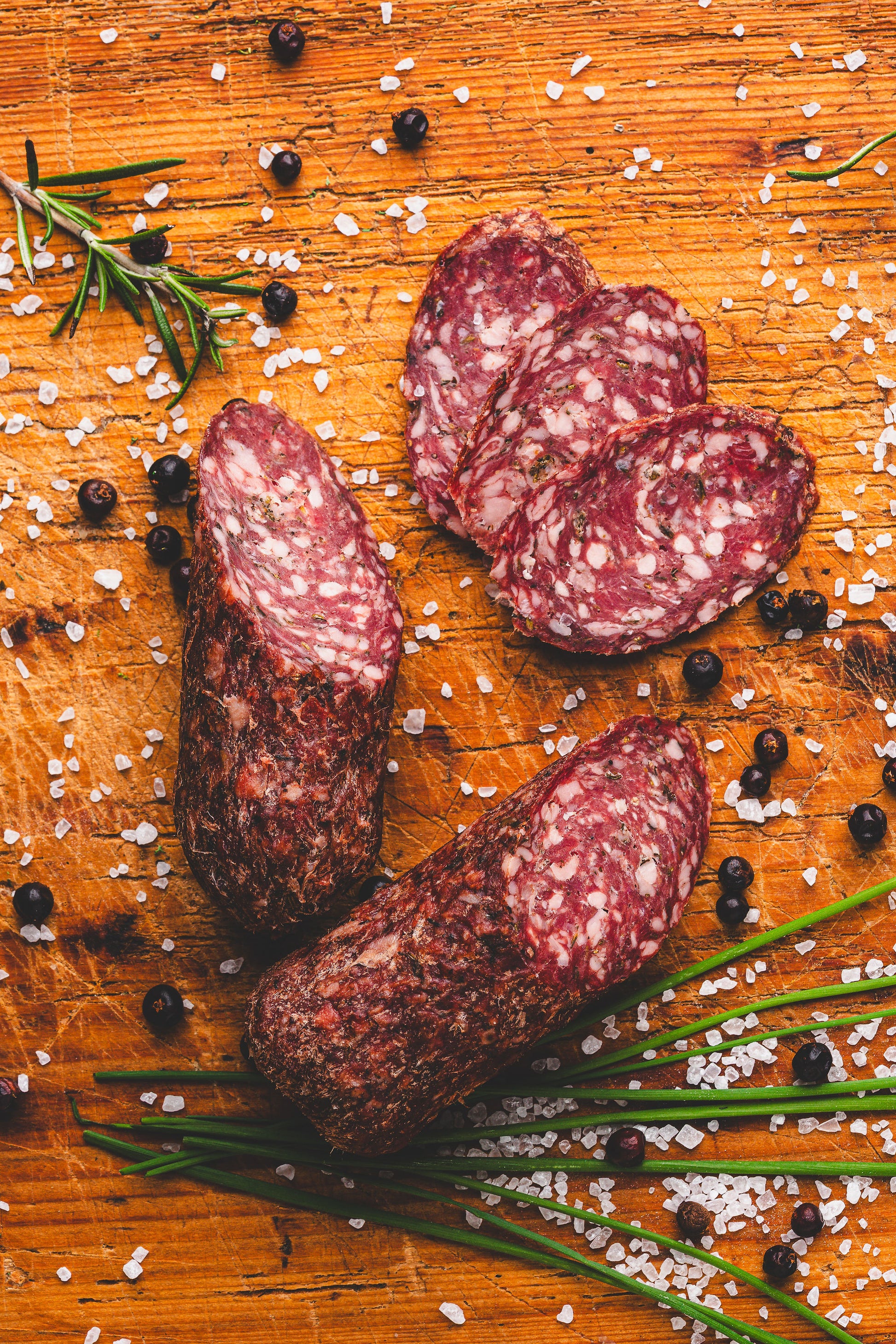 Unsere Rehsalami wird aus hochwertigem Rehfleisch hergestellt und nach traditioneller Handwerkskunst langsam gereift. Das magere Wildfleisch sorgt für ein besonders feines Aroma, während eine ausgewogene Gewürzmischung der Salami ihre kräftige, aber nicht dominante Würze verleiht.