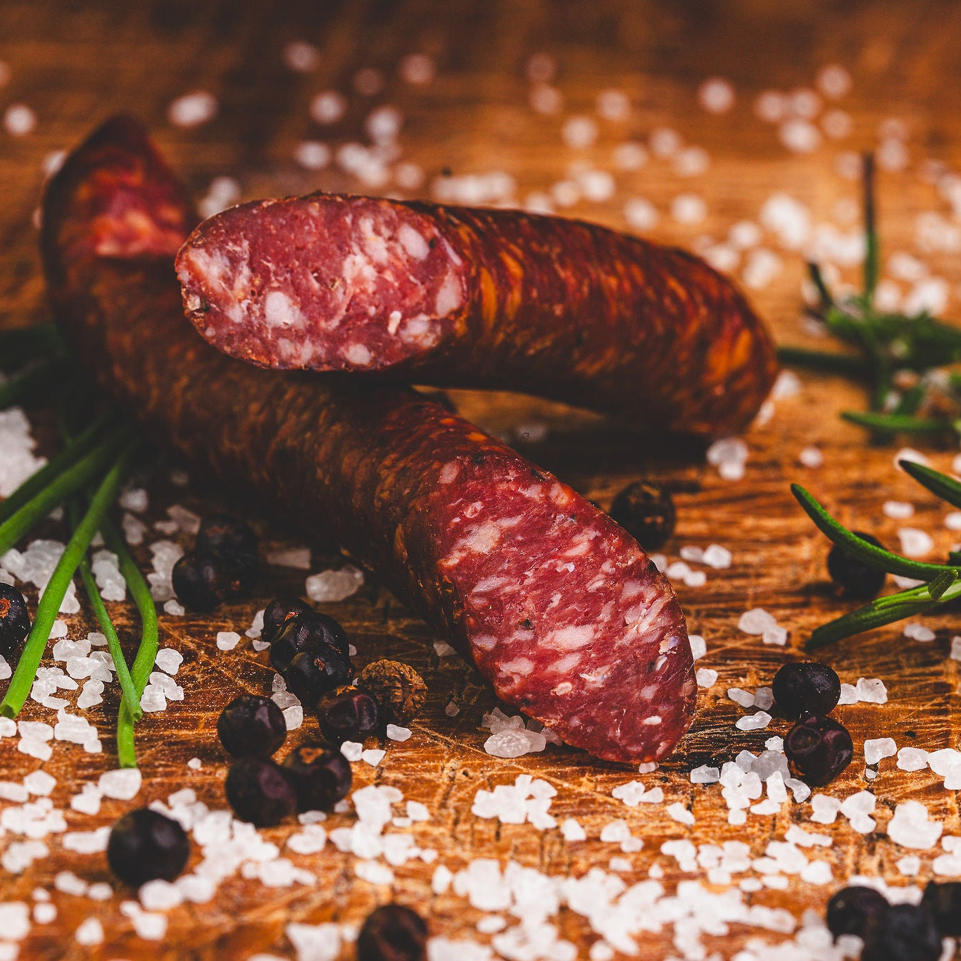 Herzhaft-würzige Wildschweinknacker, traditionell nach Schwarzwälder Art geräuchert. Die schonende Räucherung über Tannen- und Buchenholz verleiht den Knackern ihr typisch kräftiges Aroma und den unverwechselbaren Geschmack – ideal für Brotzeit, Wanderpause oder als rustikaler Snack.